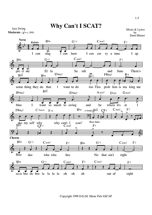 "Why Can't I SCAT? (Male key)" Sheet Music by Dom Minasi