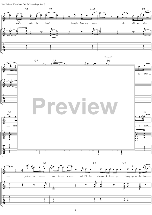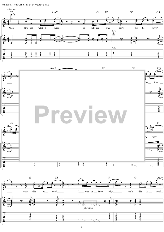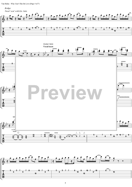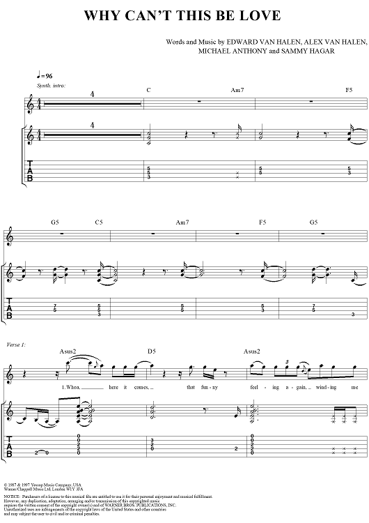 Digital Sheet Music for Why Can't This Be Love by Eddie Van Halen, Sammy Hagar, Michael Anthony, Alex Van Halen, Van Halen scored for Guitar Tab/Vocal; id:296529