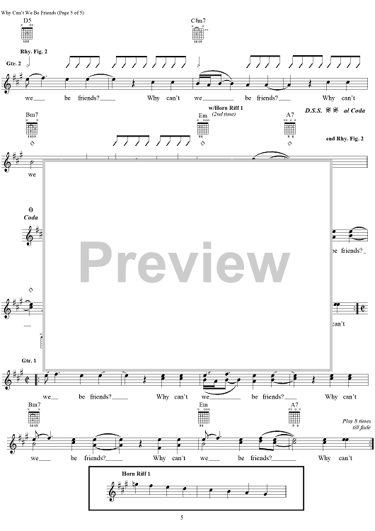 "Why Can't We Be Friends" Sheet Music by War