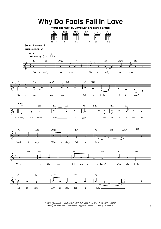Digital Sheet Music for Why Do Fools Fall In Love? by Morris Levy, Frankie Lymon, Frankie Lymon and the Teenagers scored for Easy Guitar; id:369642