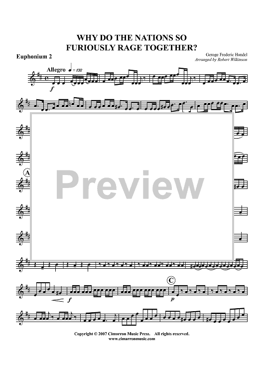 Digital Sheet Music for Why do the Nations So Furiously Rage Together? - Euphonium 2 BC/TC by George Frideric Handel, Robert Wilkinson scored for Tuba Quartet; id:416615