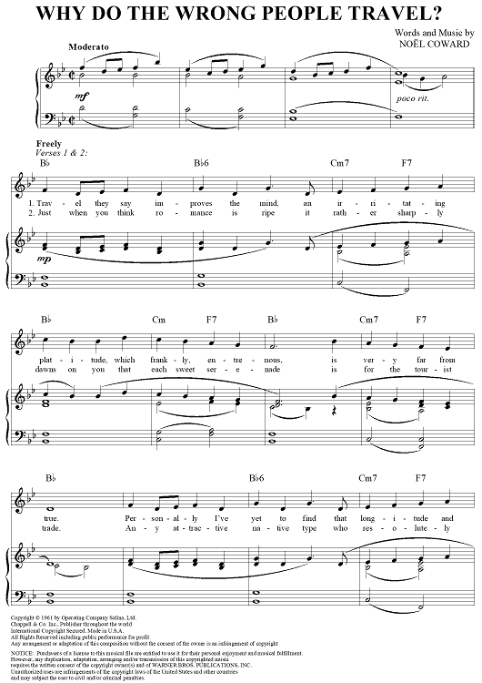 Digital Sheet Music for Why Do the Wrong People Travel? by Noel Coward, Elaine Stritch scored for Piano/Vocal/Chords; id:355730