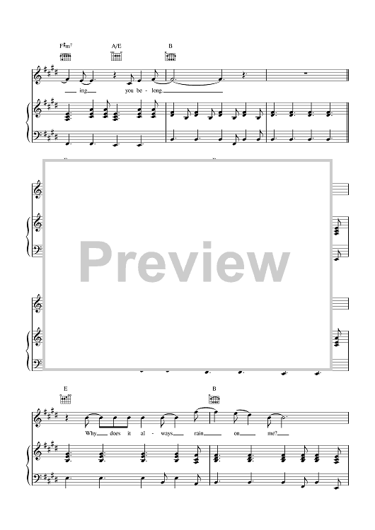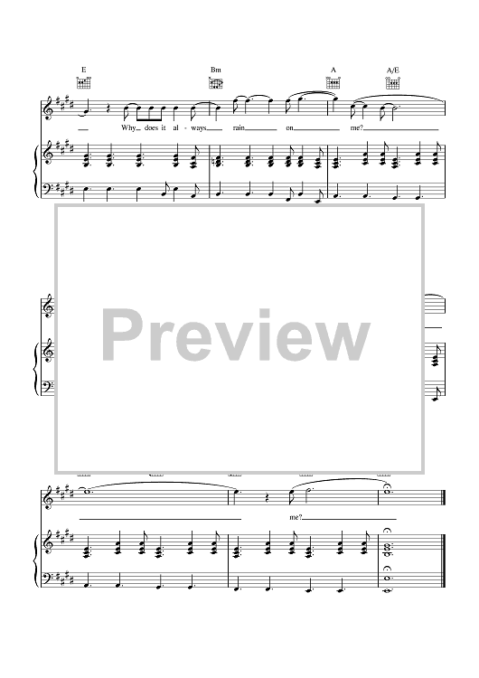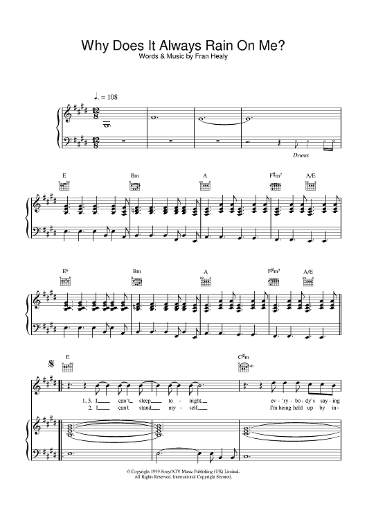 Digital Sheet Music for Why Does It Always Rain On Me? by Travis scored for Piano/Vocal/Chords; id:379091