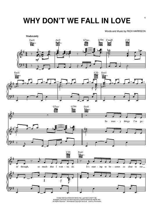Digital Sheet Music for Why Don't We Fall In Love by Rich Harrison, Amerie scored for Piano/Vocal/Chords; id:369312