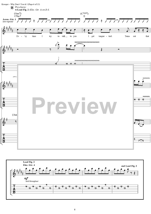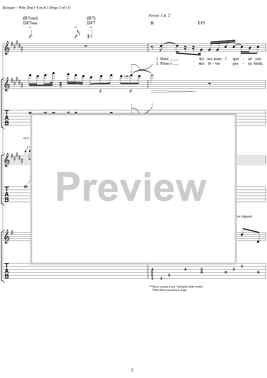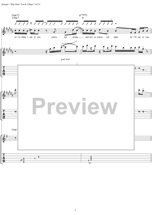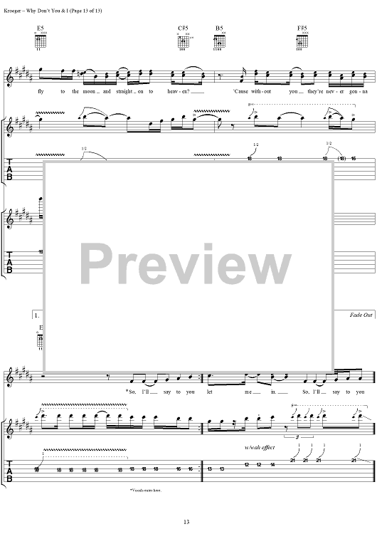 Digital Sheet Music for Why Don't You & I by Chad Kroeger, Santana, Angélique Kidjo scored for Guitar Tab/Vocal; id:295359