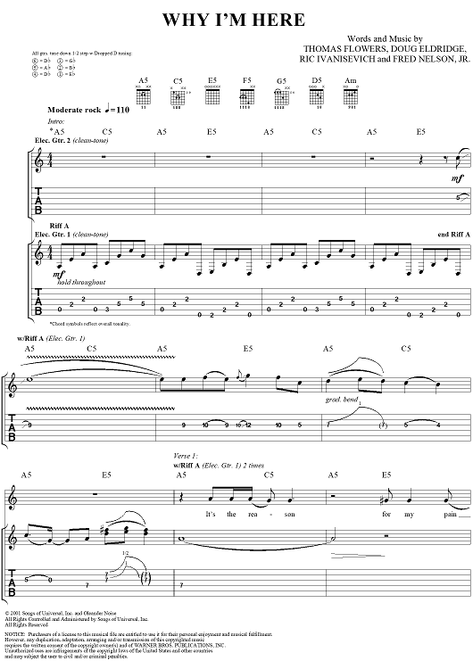 Digital Sheet Music for Why I'm Here by Oleander, Ric Ivanisevich, Thomas Flowers, Doug Eldridge, Fred Nelson, Jr. scored for Guitar Tab/Vocal; id:285317
