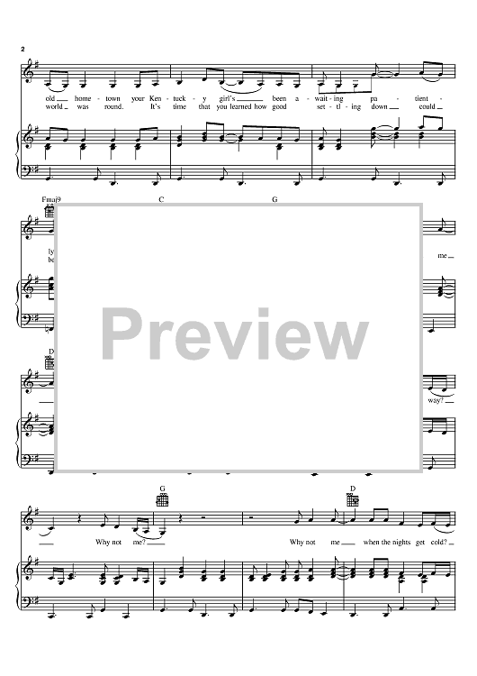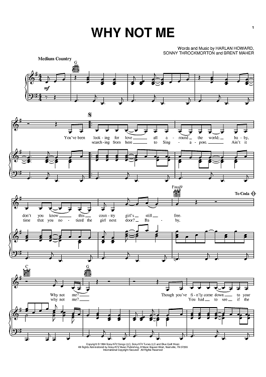 Digital Sheet Music for Why Not Me by Harlan Howard, The Judds, Brent Maher, Sonny Throckmorton scored for Piano/Vocal/Chords; id:386558