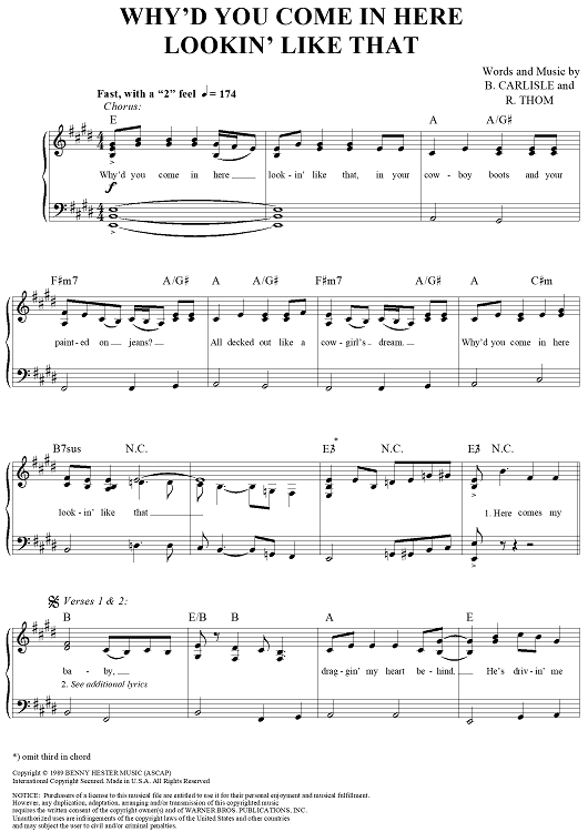 Digital Sheet Music for Why'd You Come In Here Lookin' Like That by Randy Thomas, Bob Carlisle, Dolly Parton scored for Piano/Vocal/Chords; id:273234