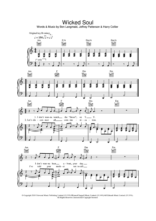 Digital Sheet Music for Wicked Soul by Harry Collier, Kubb, Ben Langmaid, Jeffrey Patterson scored for Piano/Vocal/Chords; id:389307
