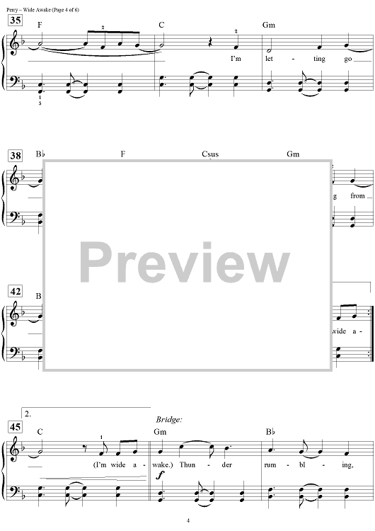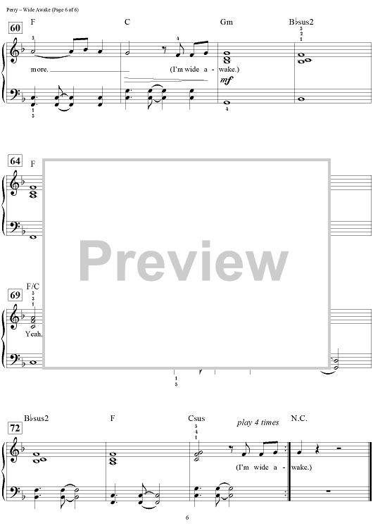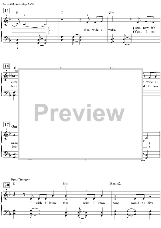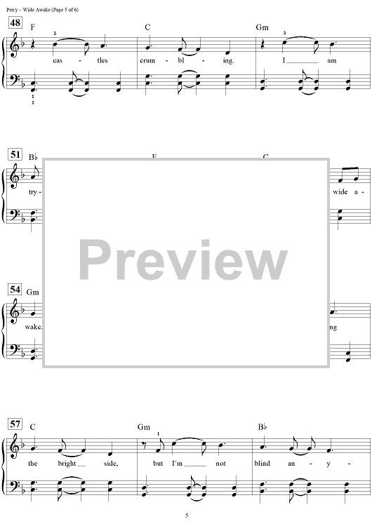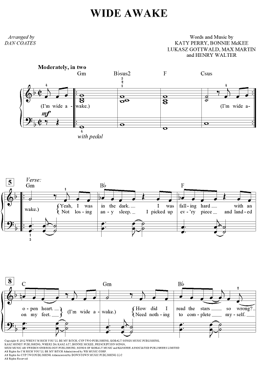 Digital Sheet Music for Wide Awake by Dan Coates, Max Martin, Katy Perry, Lukasz Gottwald, Bonnie McKee scored for Easy Piano/Vocal/Chords; id:445348