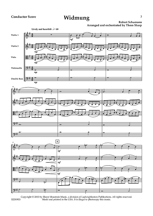 Digital Sheet Music for Widmung for String Orchestra - Score by , Robert Schumann, Thom Sharp scored for String Orchestra; id:460787