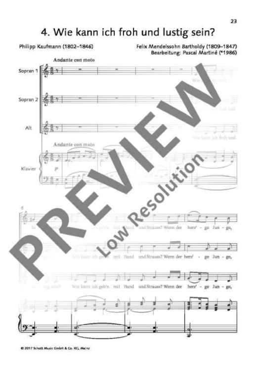 Digital Sheet Music for Wie kann ich froh und lustig sein by Felix Mendelssohn Bartholdy, Pascal Martiné scored for Female Choir (ssa) And Piano; id:492037