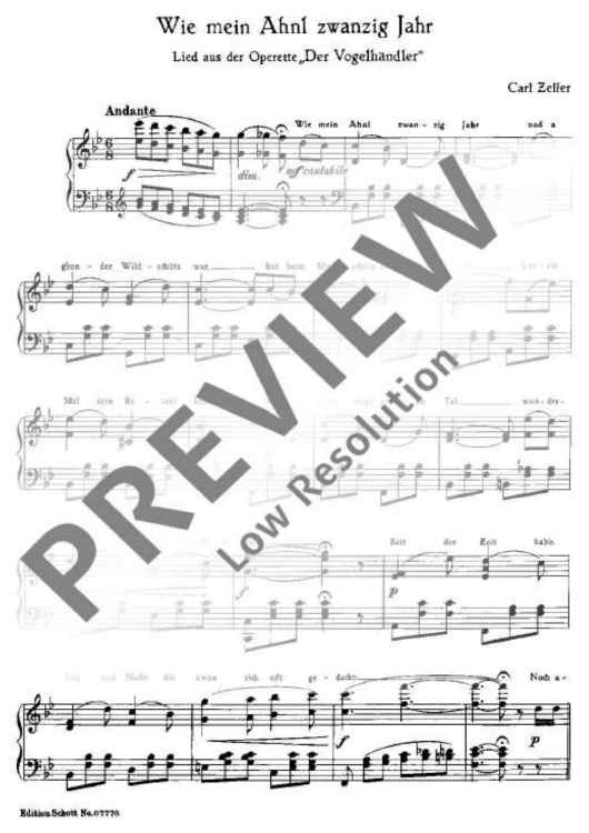 Digital Sheet Music for Wie mei Ahnl zwanzig Jahr by Carl Zeller scored for Piano; id:482323