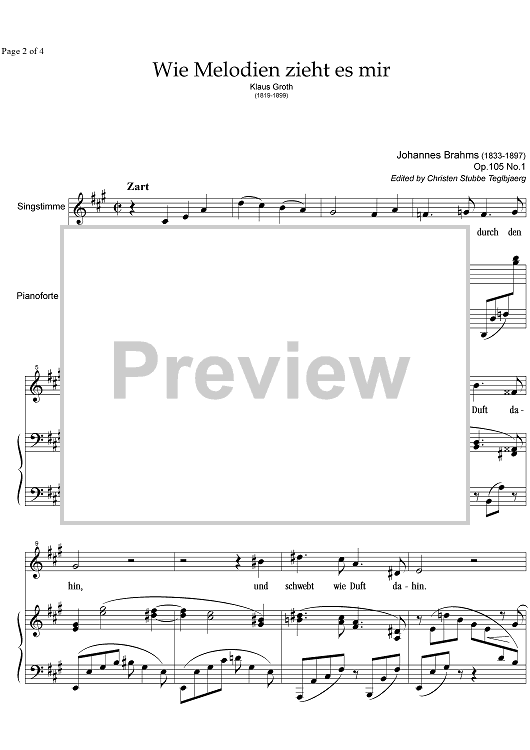 "Wie Melodien zieht es mir Op.105 No. 1" Sheet Music by Johannes Brahms