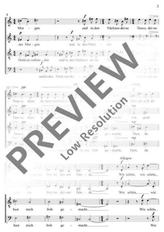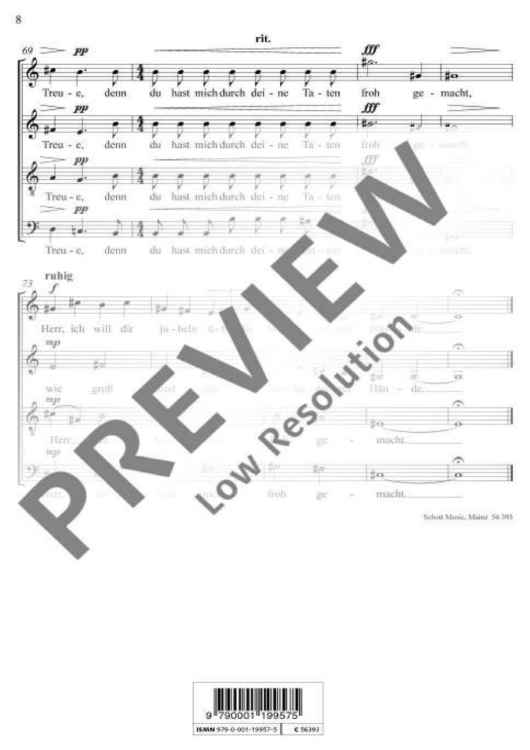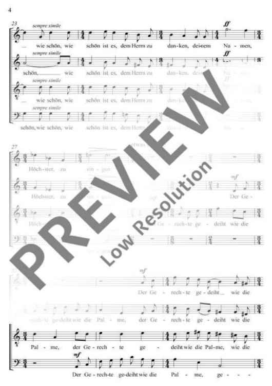 Wie schön ist es, dem Herrn zu danken – these affirmative words from Psalm 92 were used by Andreas Pieper as a basis of his composition of the same name for mixed a cappella choir (SATB), thus creating a sacred choral work that is perfect for ambitious amateur choirs and for use in church services. In this psalm song for the Sabbath day, the eternal joy at and gratitude for the deeds of the Lord become apparent both in the text and the music. In addition, the musical realization of the hymn of thanksgiving shows once again Pieper's predilection for a cappella singing. Such a limitation of the external means gives him, by his own account, 'a sense of freedom and concentration on the central musico-theological statement'. See for yourself!