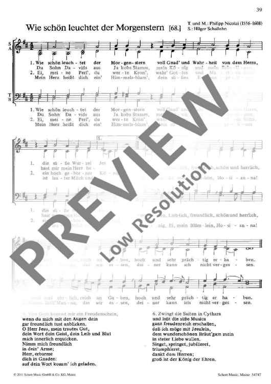 Digital Sheet Music for Wie schön leuchtet der Morgenstern by Hilger Schallehn scored for Mixed Choir; id:478768