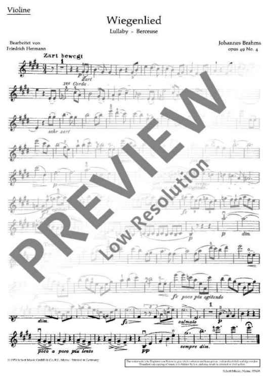 Digital Sheet Music for Wiegenlied F major by Johannes Brahms, Friedrich Hermann scored for Violin And Piano; id:474922