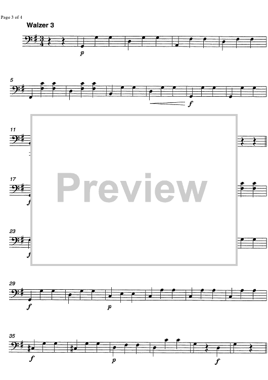 Digital Sheet Music for Wiener Aquarell Walzer Op.208 - Cello by Kurt Schmid scored for String Quartet; id:338081