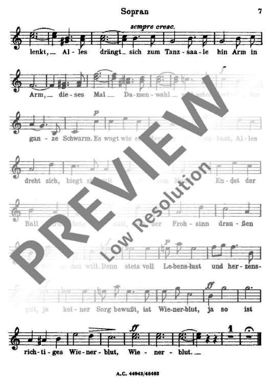 Digital Sheet Music for Wiener Blut - Soprano by Joseph Pircher, Johann Strauß (Son) scored for Mixed Choir (satb) And Piano; id:472180
