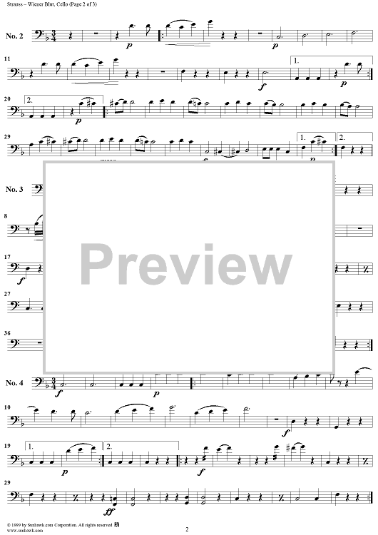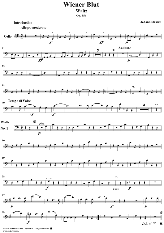 "Wiener Blut (Vienna Blood), Op. 354 - Cello" Sheet Music by Johann Strauss II