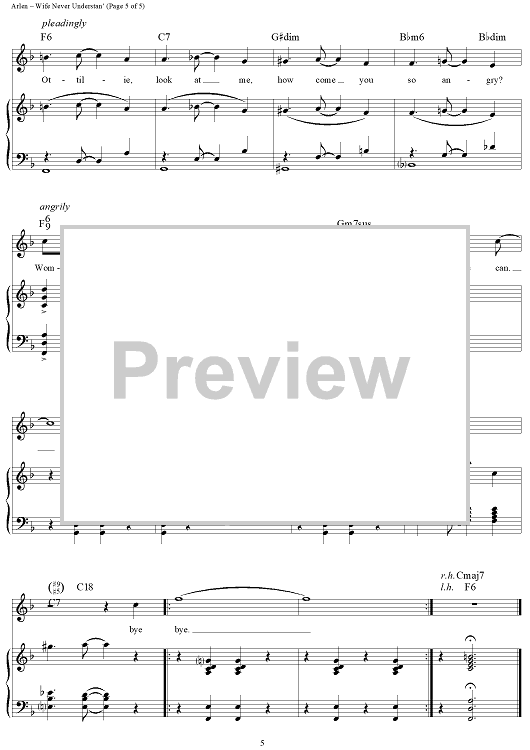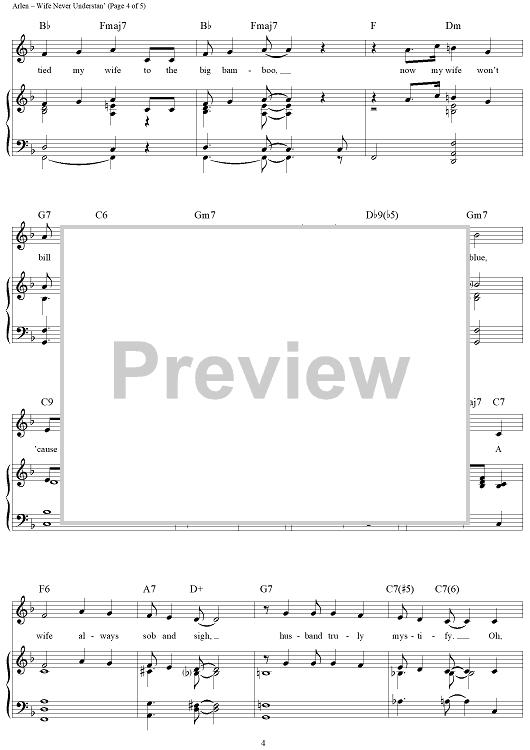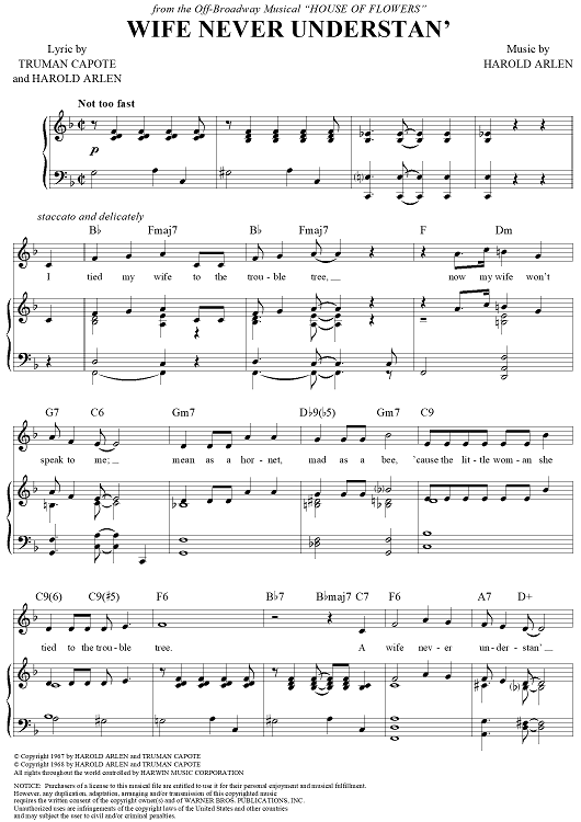 Digital Sheet Music for Wife Never Understan' by Harold Arlen, Truman Capote scored for Piano/Vocal/Chords; id:356006