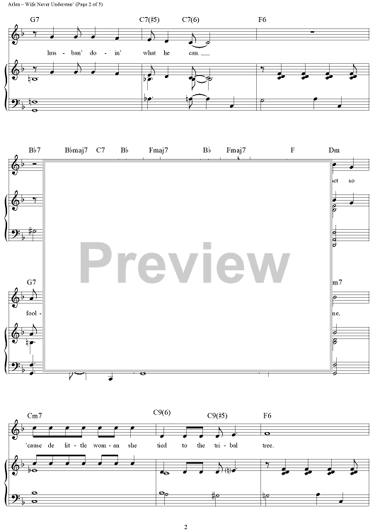 "Wife Never Understan'" Sheet Music by Harold Arlen