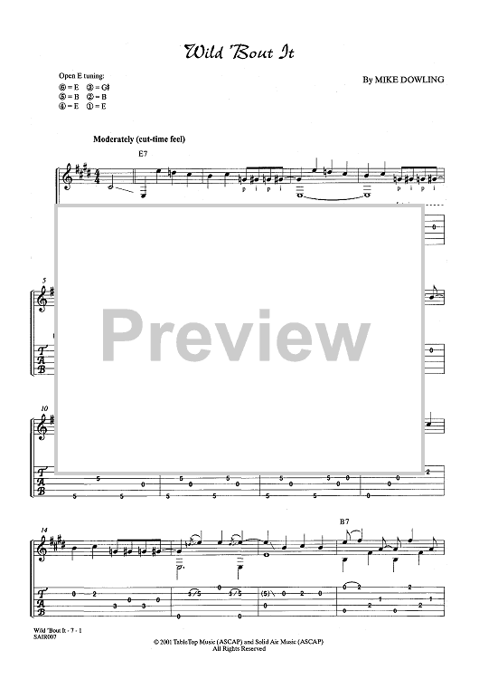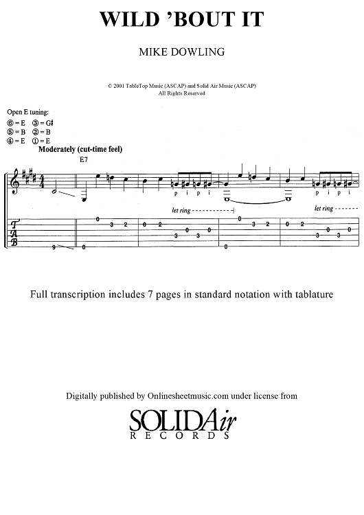 Digital Sheet Music for Wild 'Bout It (With Embedded Audio) by Mike Dowling scored for Guitar Tab; id:451770