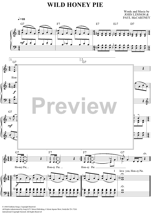 Digital Sheet Music for Wild Honey Pie by Paul McCartney, The Beatles, John Lennon scored for Piano/Vocal/Chords; id:362742