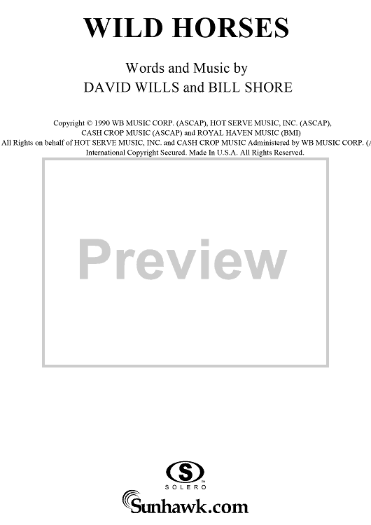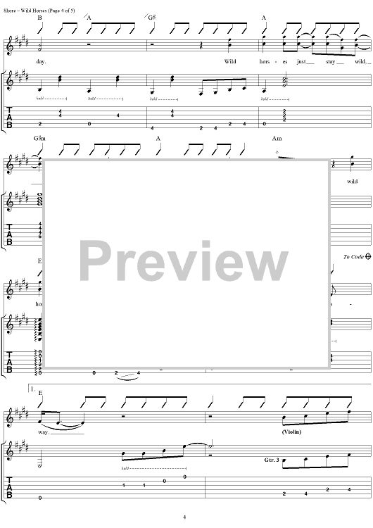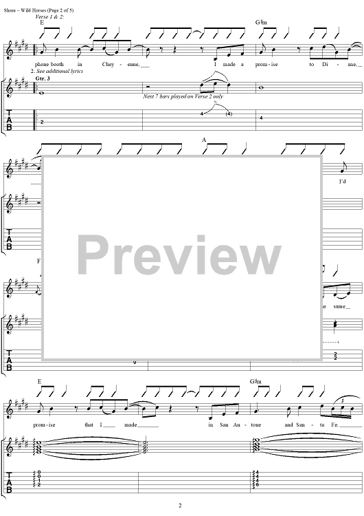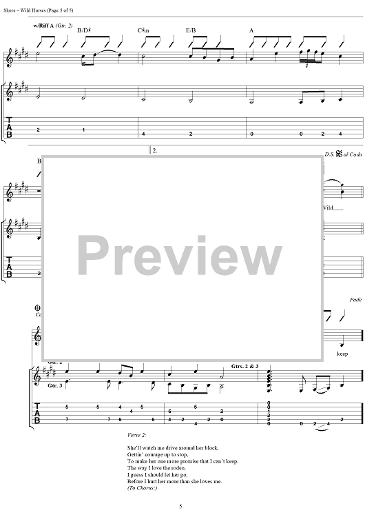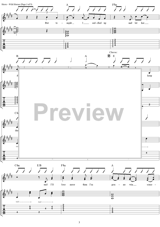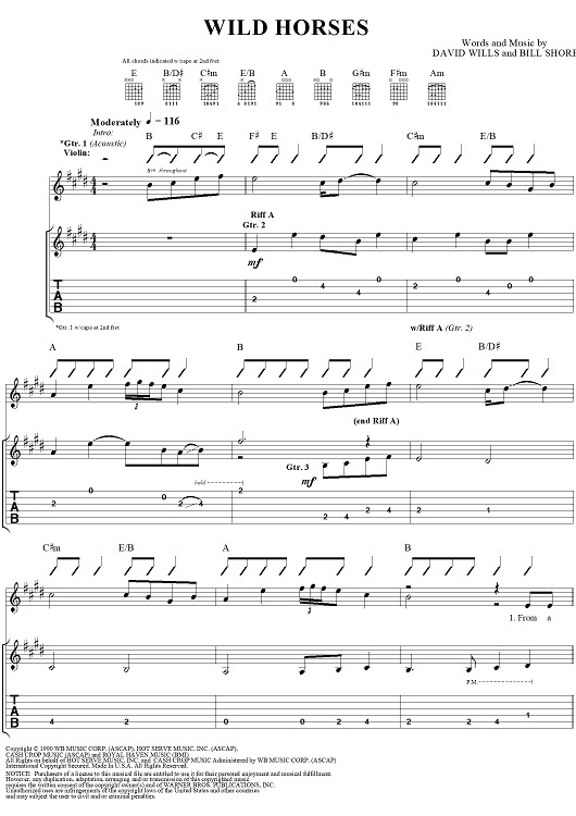 Digital Sheet Music for Wild Horses by Garth Brooks, Bill Shore, David Willis scored for Guitar Tab/Vocal; id:257868