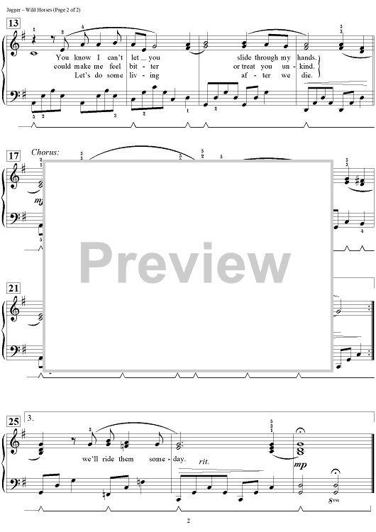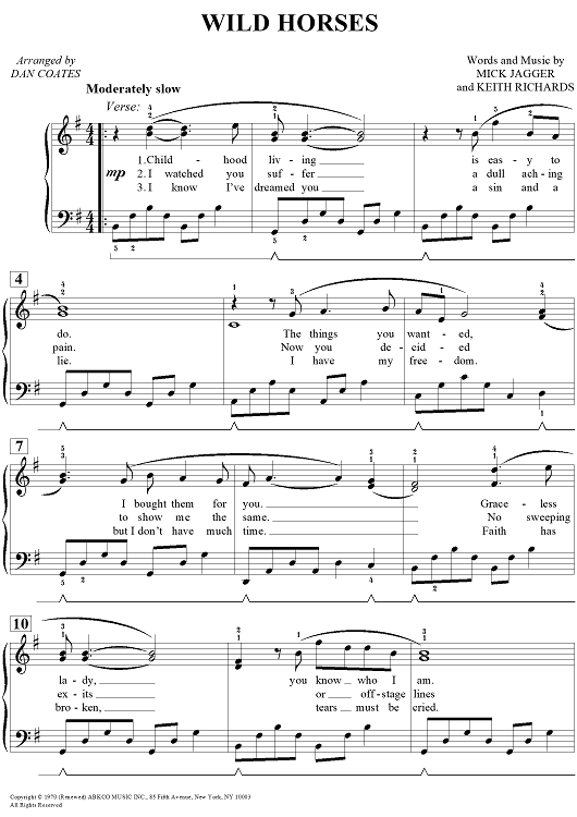 Digital Sheet Music for Wild Horses by Dan Coates, Keith Richards, Mick Jagger scored for Piano; id:462960