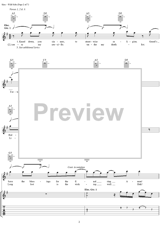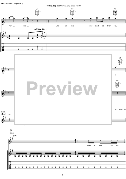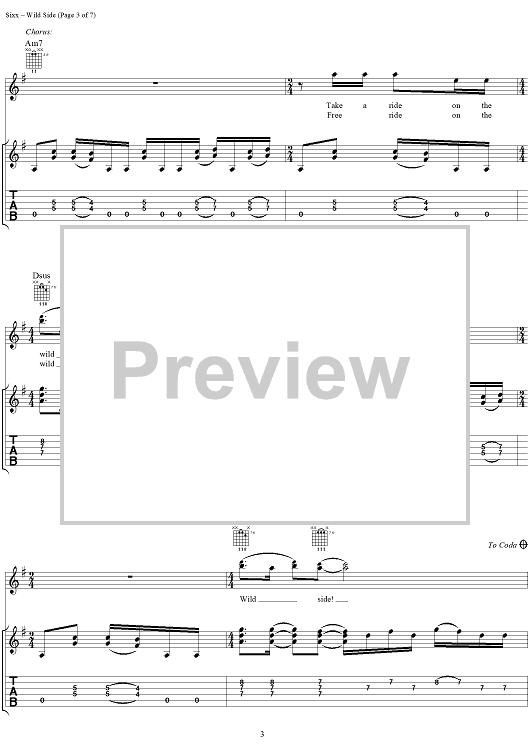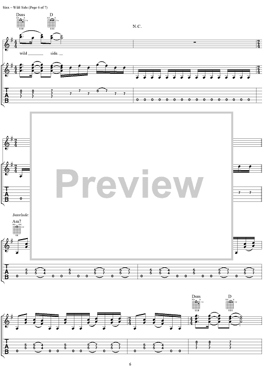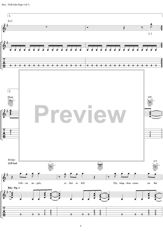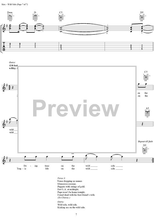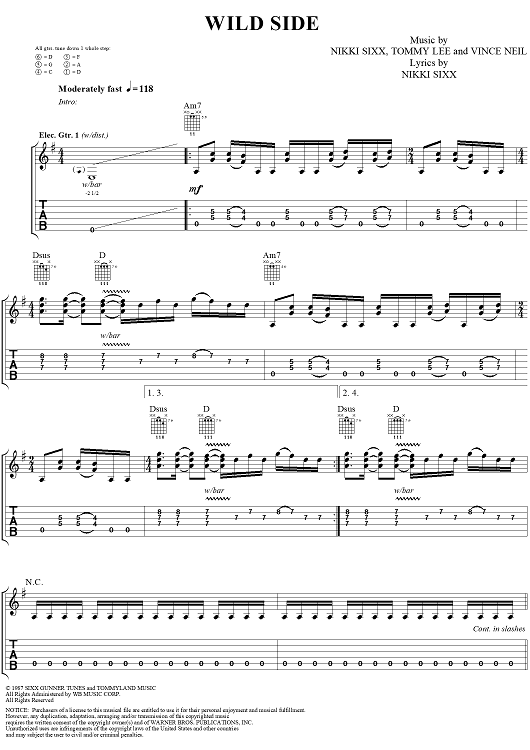 Digital Sheet Music for Wild Side by Mötley Crüe, Nikki Sixx, Tommy Lee, Vince Neil scored for Guitar Tab/Vocal; id:297754