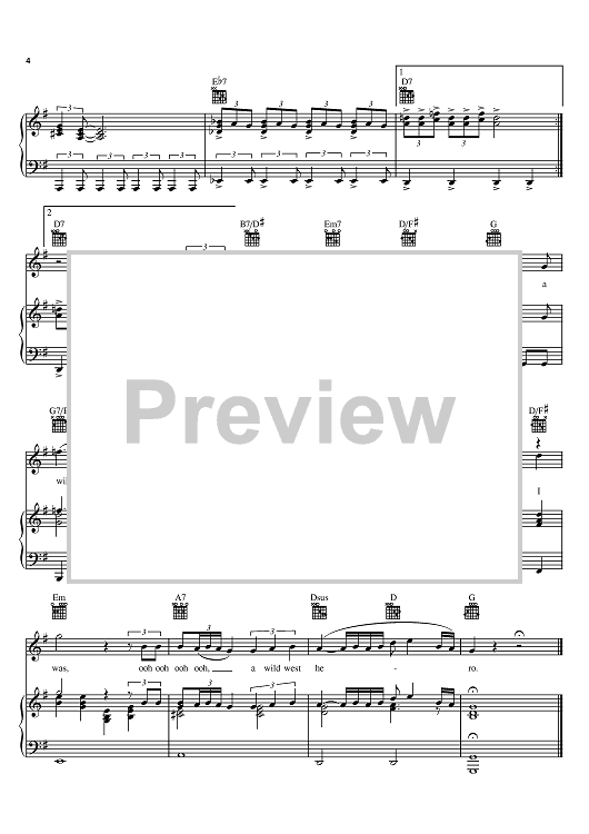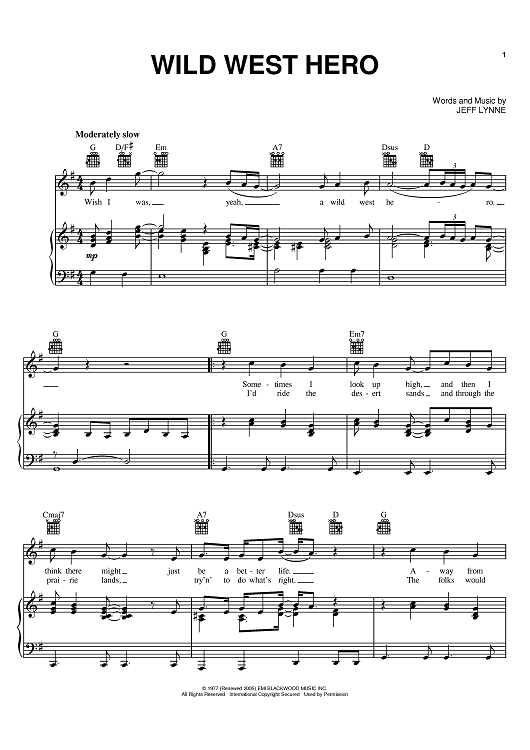 Digital Sheet Music for Wild West Hero by Jeff Lynne, Electric Light Orchestra scored for Piano/Vocal/Chords; id:402702