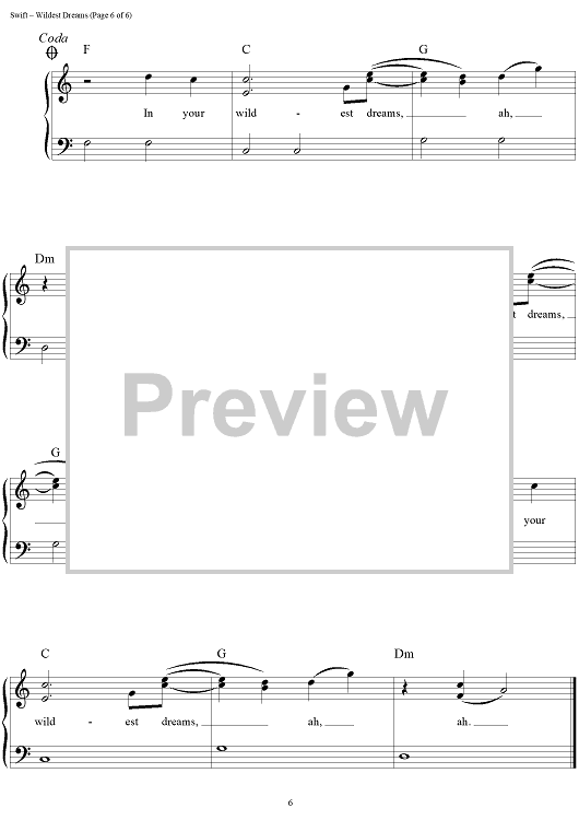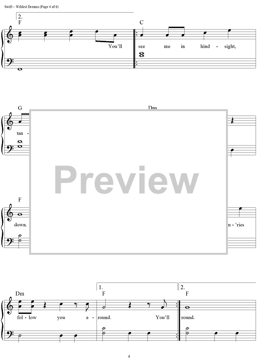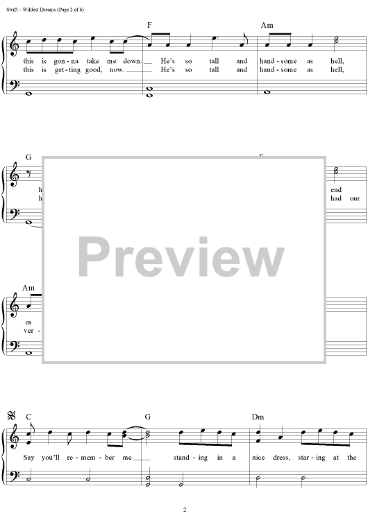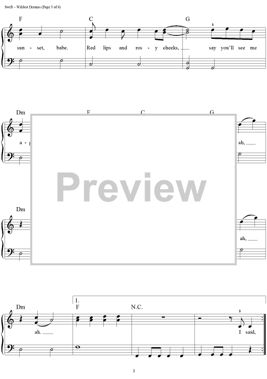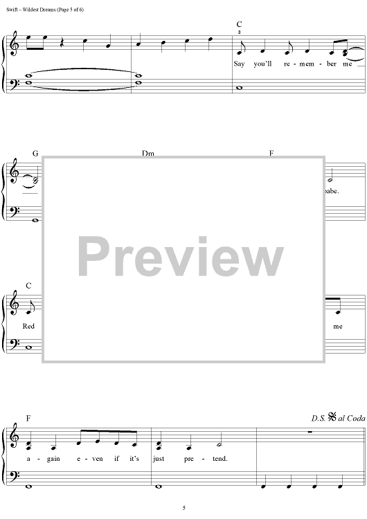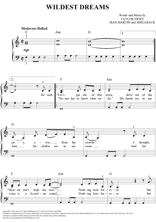Digital Sheet Music for Wildest Dreams by Max Martin, Taylor Swift, Shellback scored for Easy Piano/Vocal/Chords; id:460305