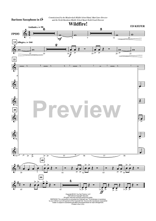 "Wildfire! - Baritone Sax" Sheet Music by Ed Kiefer