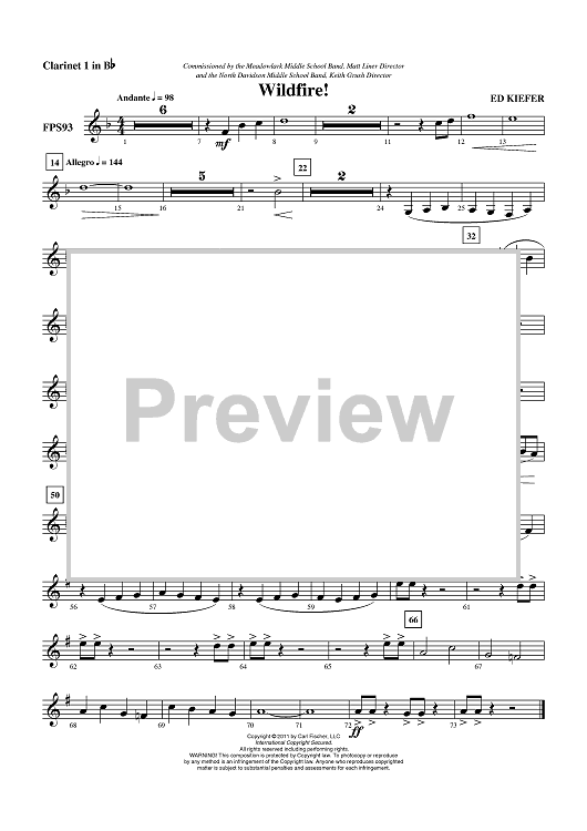 Digital Sheet Music for Wildfire! - Clarinet 1 in Bb by Ed Kiefer scored for Concert Band; id:420489