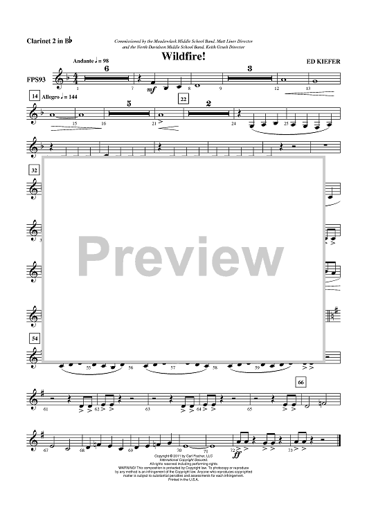 "Wildfire! - Clarinet 2 in Bb" Sheet Music by Ed Kiefer