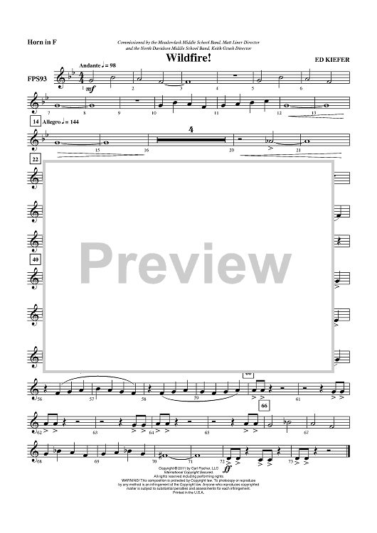 Digital Sheet Music for Wildfire! - Horn in F by Ed Kiefer scored for Concert Band; id:420497