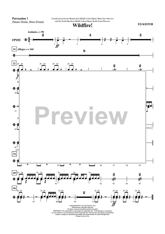 "Wildfire! - Percussion 1" Sheet Music by Ed Kiefer