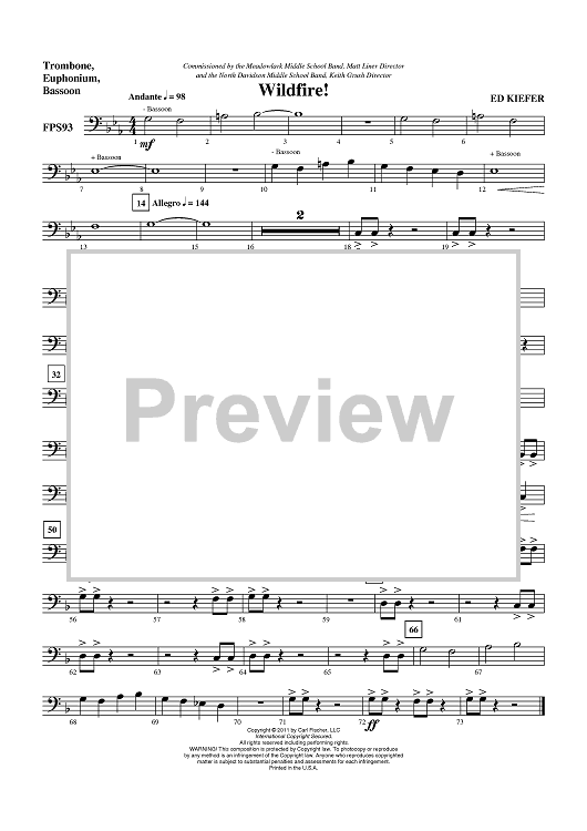Digital Sheet Music for Wildfire! - Trombone/Euphonium BC/Bassoon by Ed Kiefer scored for Concert Band; id:420498
