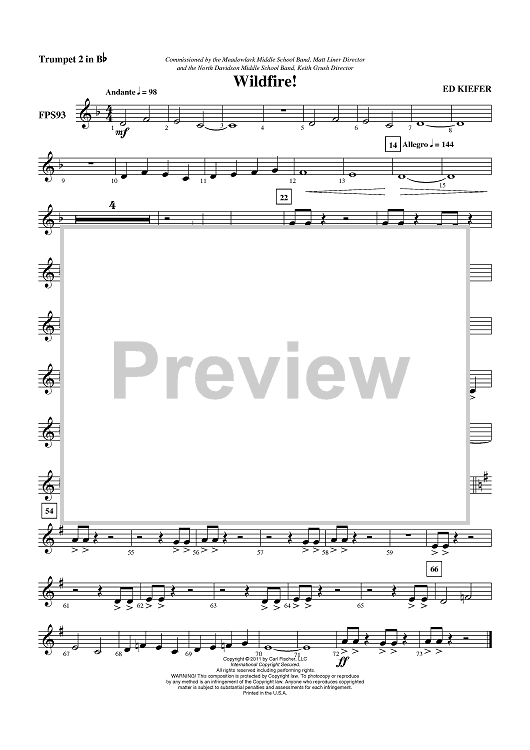 "Wildfire! - Trumpet 2 in Bb" Sheet Music by Ed Kiefer