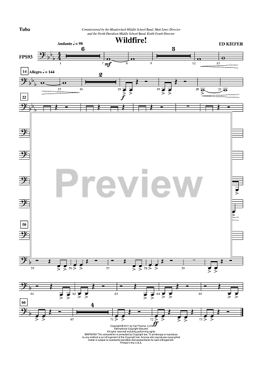 Digital Sheet Music for Wildfire! - Tuba by Ed Kiefer scored for Concert Band; id:420500