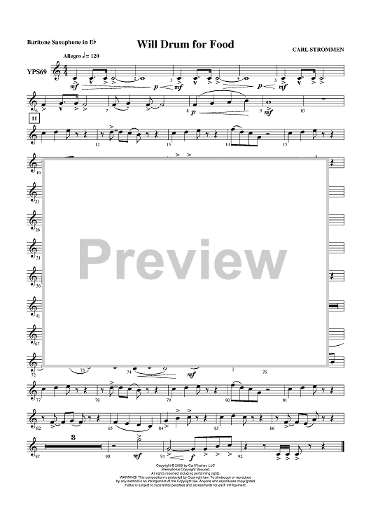 Digital Sheet Music for Will Drum for Food - Baritone Sax by Carl Strommen scored for Concert Band; id:409543