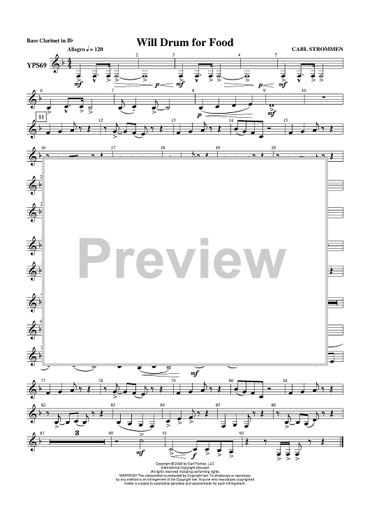 Digital Sheet Music for Will Drum for Food - Bass Clarinet in B-flat by Carl Strommen scored for Concert Band; id:409539