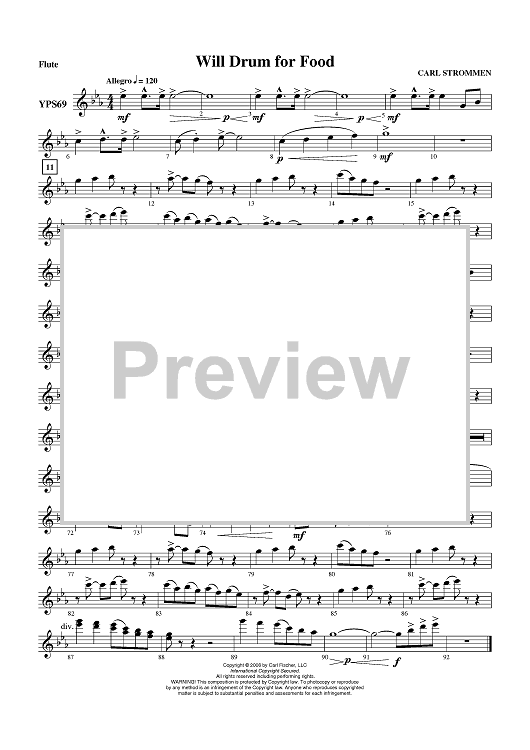 Digital Sheet Music for Will Drum for Food - Flute by Carl Strommen scored for Concert Band; id:409535