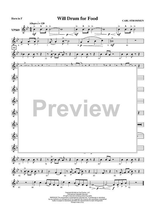 Digital Sheet Music for Will Drum for Food - Horn in F by Carl Strommen scored for Concert Band; id:409546