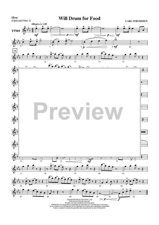 Digital Sheet Music for Will Drum for Food - Oboe by Carl Strommen scored for Concert Band; id:409536