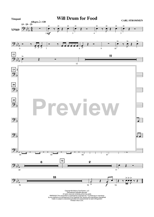 "Will Drum for Food - Timpani" Sheet Music by Carl Strommen