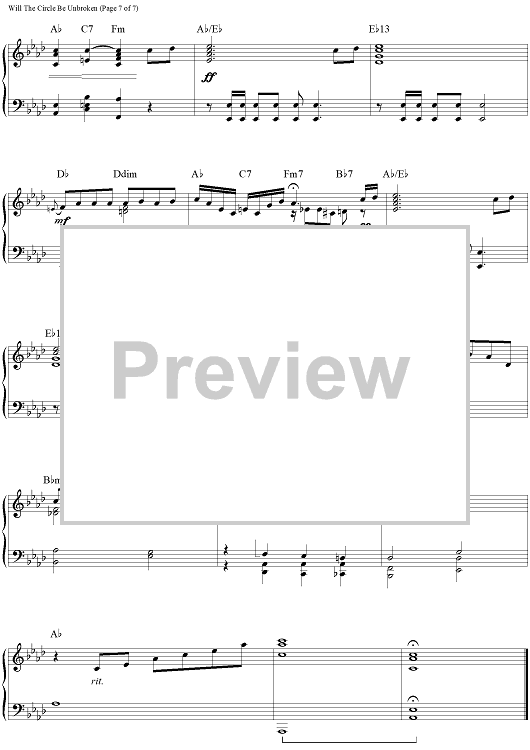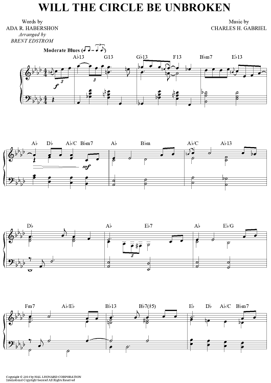 Digital Sheet Music for Will The Circle Be Unbroken by Charles H. Gabriel, Brent Edstrom, Ada R. Habershon scored for Piano Solo; id:463318