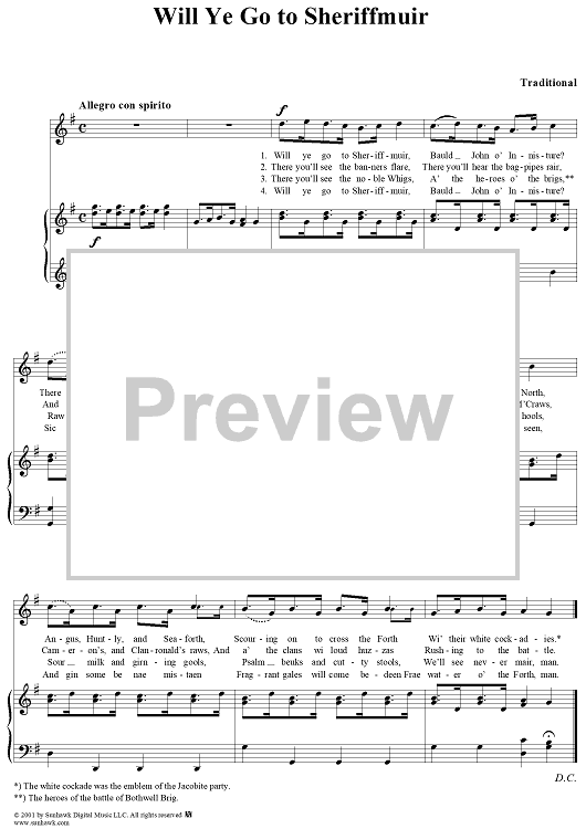 Digital Sheet Music for Will ye go to Sheriffmuir by Traditional scored for Piano/Vocal; id:257929