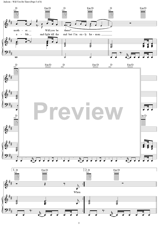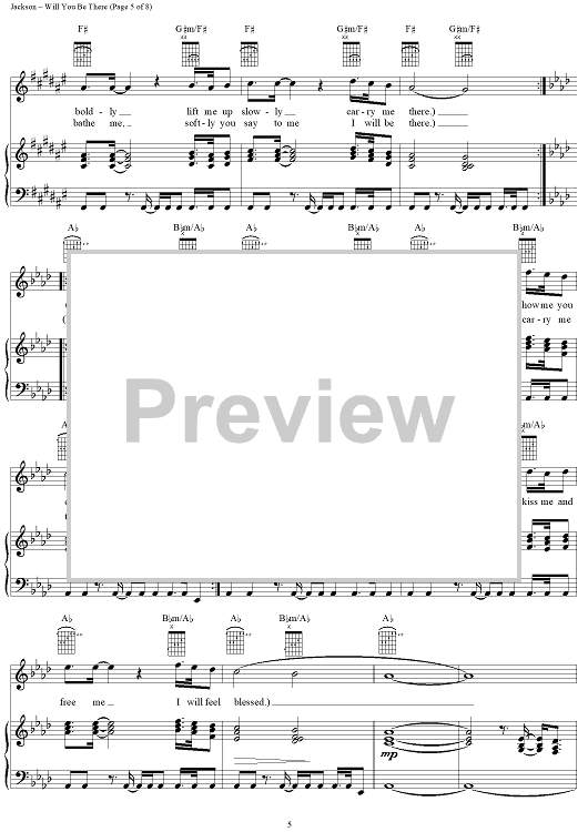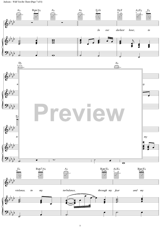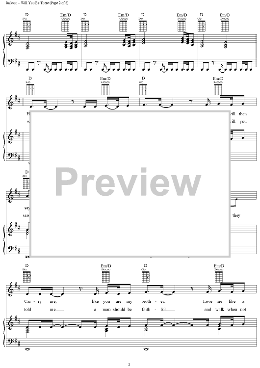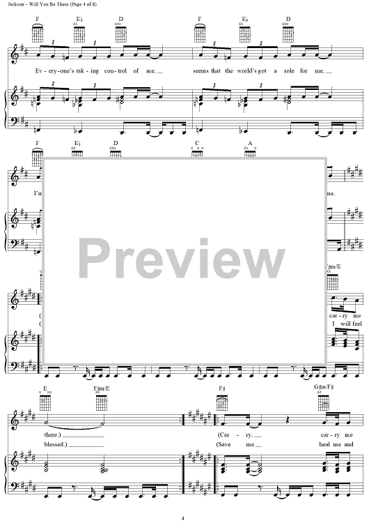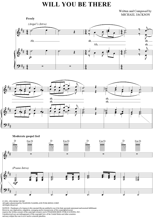 Digital Sheet Music for Will You Be There by Michael Jackson scored for Piano/Vocal/Chords; id:119703